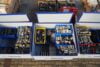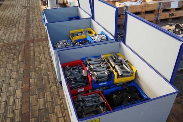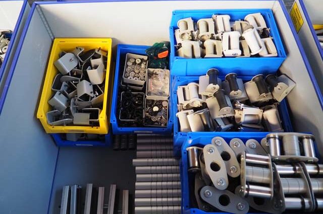 Sepperated sets of poles, arms, screenfixtures, and railclamps.
